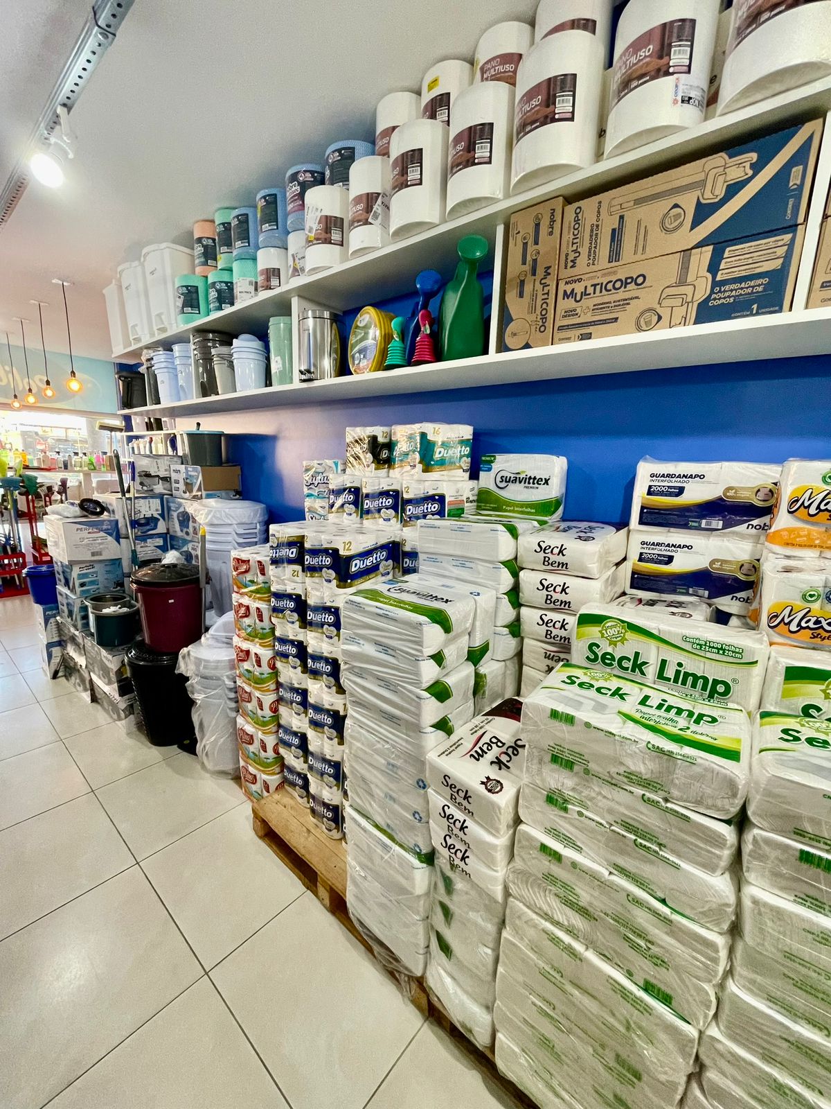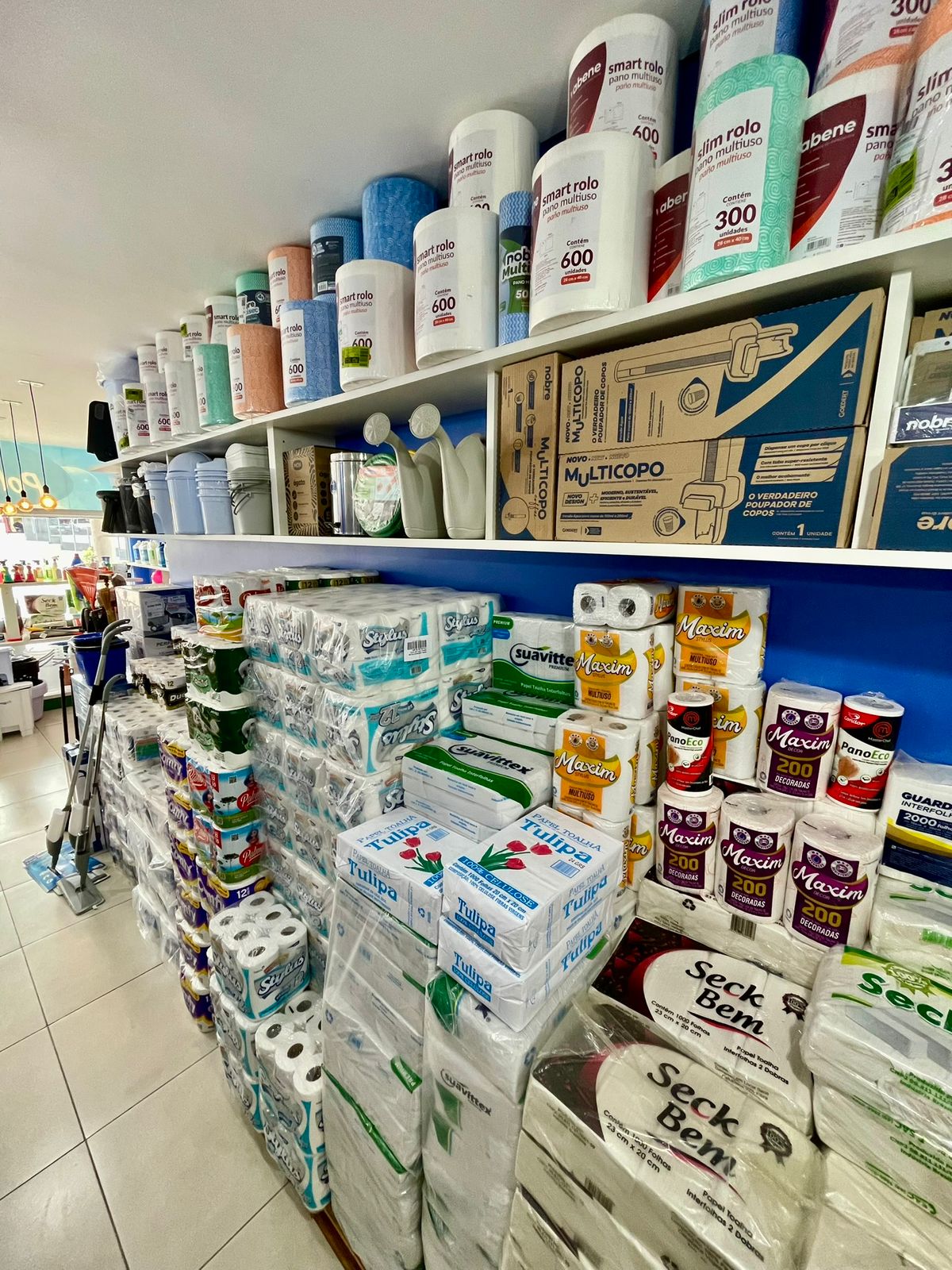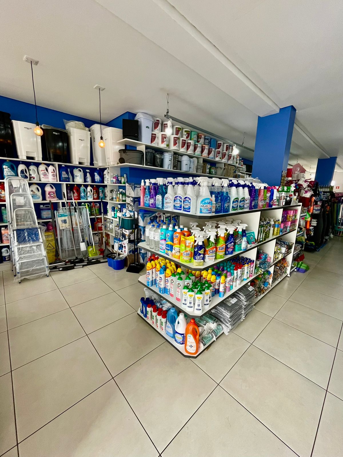 Amplo espaço com mix completo de produtos.