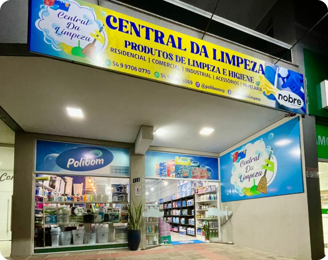Somos uma loja especializada em produtos de limpeza profissionais e domésticos, oferecendo soluções completas para residências, empresas, condomínios e indústrias. Nosso compromisso é fornecer qualidade, eficiência e ótimo custo-benefício, sempre com atendimento próximo e confiável.